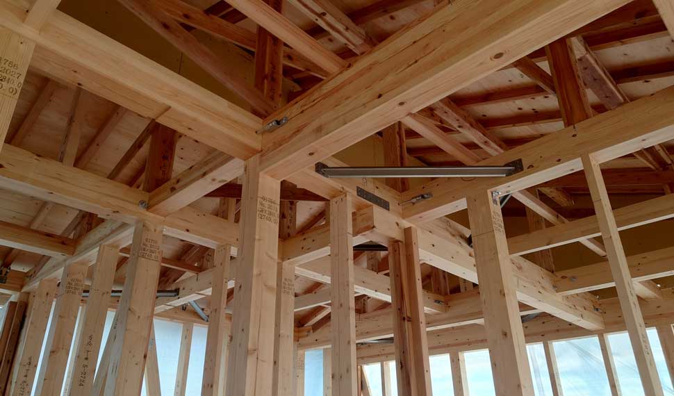 棟上げは、家を建てる中でも大事な工程のひとつです。木造住宅の建築工事では、最後に屋根の上部に木材を架け、柱・梁・屋根といった家の骨組みになる部分の工程が完了します。この最後に組む木材が「棟木」と呼ばれているため、骨組みを最後まで作りあげることを「棟上げ(むねあげ)」と呼びます。棟上げの日は朝から作業を始め、1階の柱から屋根に至るまですべての骨組みを、1~2日で作りあげます。